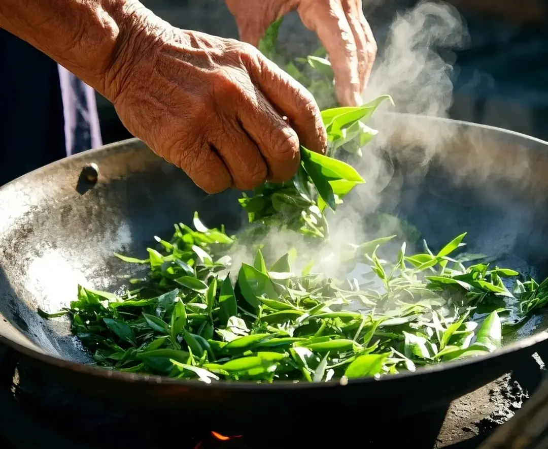 茶葉的「傳統工藝」是時光沉澱的智慧,每一步都藏著對自然與時節的敬畏。採摘便有講究 —— 明前龍井採一芽一葉,輕提不捏壓;武夷岩茶待葉片「開面」,晨露未晞時采收。